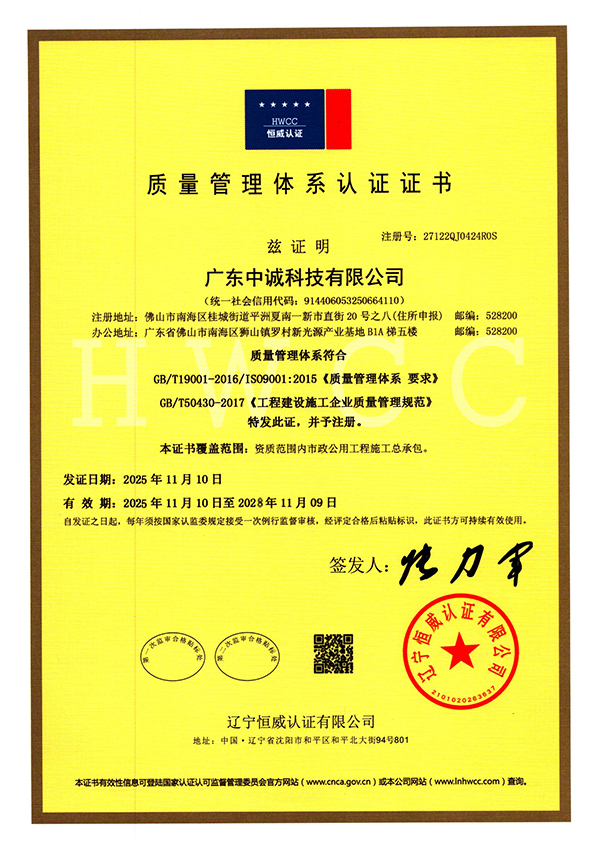 公司拥有规范的管理和施工经验,并已通过ISO9001/14001等管理体系认证。